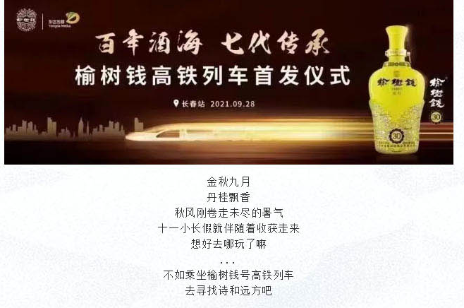“百年酒海 七代傳承”榆樹(shù)錢(qián)號(hào)高鐵首發(fā)儀式隆重舉行